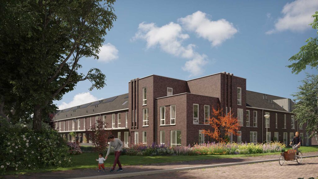 Het voormalig ziekenhuisterrein aan de Fesevurstraat in Deventer is getransformeerd tot woonwijk. De vooraf opgestelde visualisaties gaven een perfect beeld van de toekomstige invulling. De foto na realisatie (rechts) laat vrijwel geen verschillen zien.